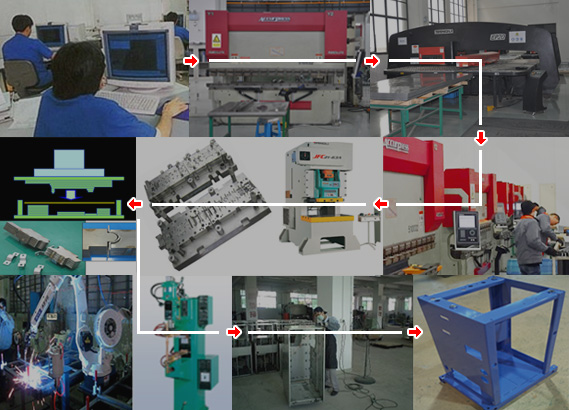 本公司生产线采用32工位数控转塔冲床﹑数控折弯机﹑龙门型双点高性能压力机﹑大工作面双点压力机﹑开式压力机(工作压力25吨-400吨)﹑瑞士金马智能化静电喷粉流水线﹑扬力高速精密自动车床及激光切割车床等设备,并配备多功能关节臂、2.5D投影仪、ROHS分析仪等全套专业检测试验设备…
